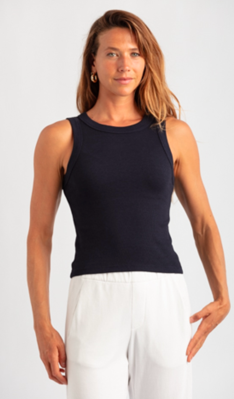 MILA RIBBED CROP TANK TOP BLACK
