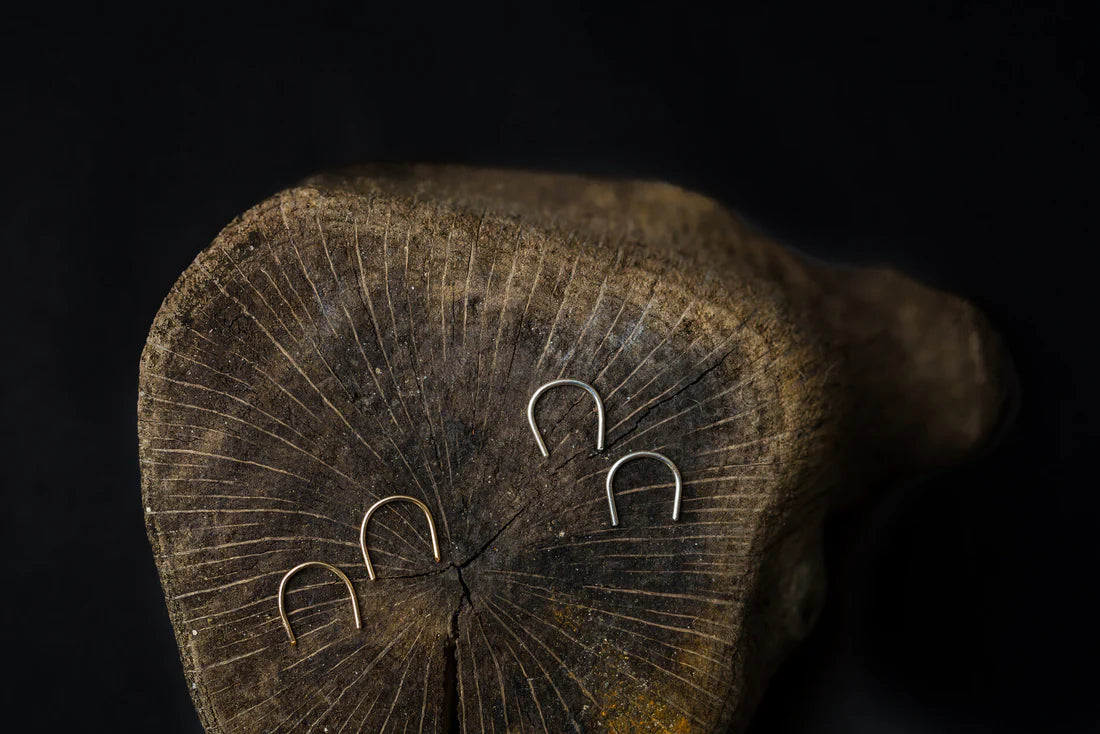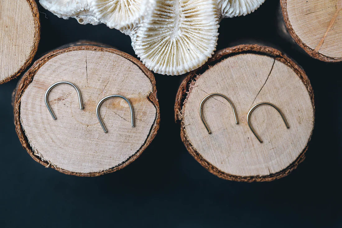 Minimalistic mini cuffs for any piercing. Great for everyday or travel. They look like little bars pointed up and mini threaders pointed down. Hand formed and lightly hammered with either 14k gold fill or sterling silver.