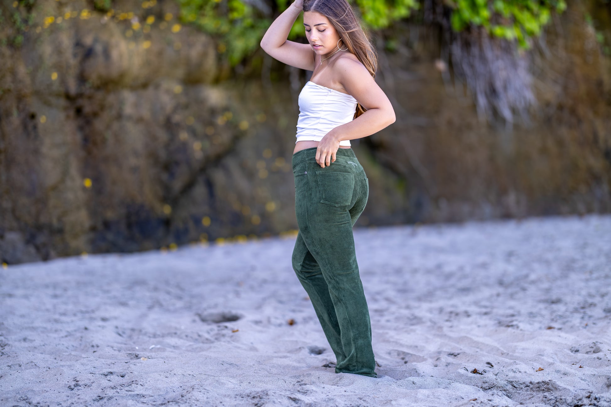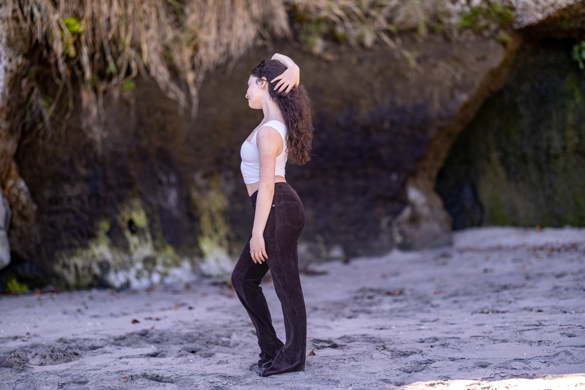 These corduroy pants are like wearing a second layer of skin. Higher waist on this style with flare bottom. Super stretchy and deliciously soft!