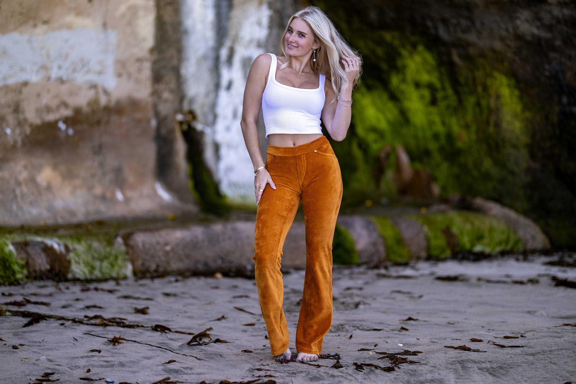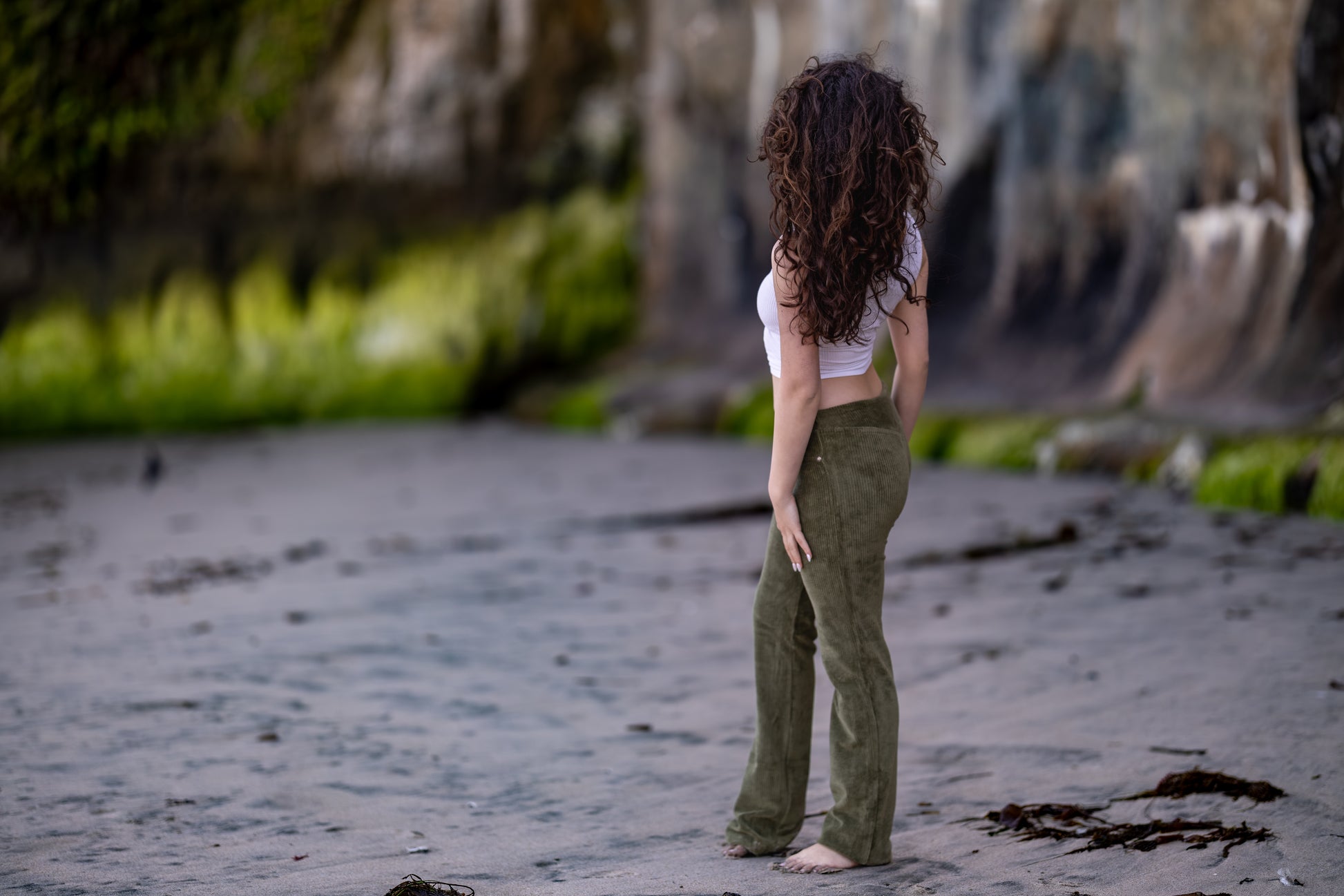 These corduroy pants are like wearing a second layer of skin. Higher waist on this style with flare bottom. Super stretchy and deliciously soft!